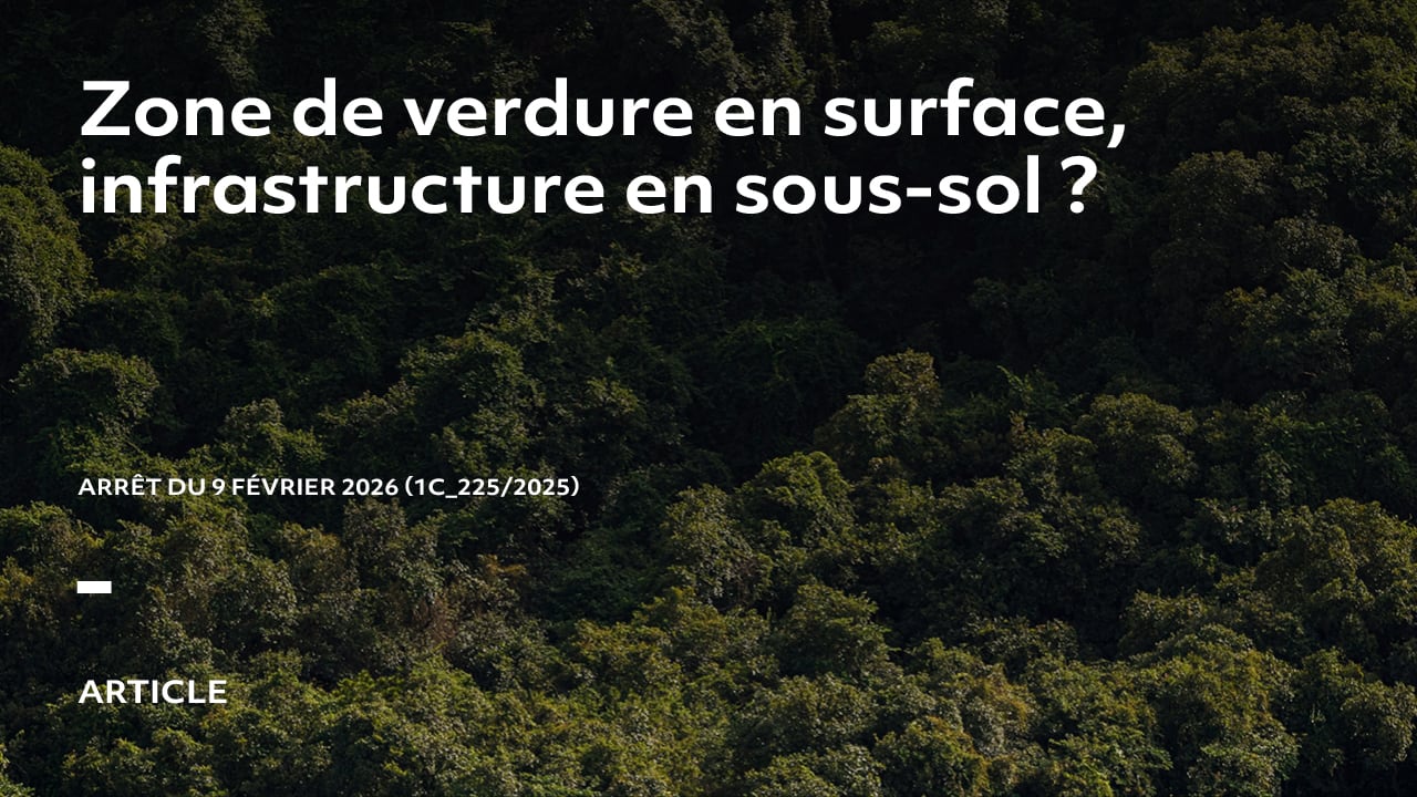 Par son arrêt 1C_225/2025 du 9 février 2026, destiné à la publication, le Tribunal fédéral apporte une clarification importante en matière d’aménagement du territoire, en particulier s’agissant de la qualification des zones de verdure en milieu urbain et de la possibilité d’y prévoir des constructions souterraines.